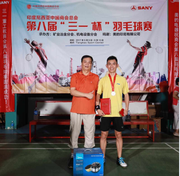 9月9日—10日,印尼中国商会总会第八届“三一杯”羽毛球赛在雅加达举行。本届赛会由印尼中国商会总会、三一重工联办,机电设备分会和矿业冶金分会共同承办。此次比赛共有逾40家商会会员单位报名参加,并吸引了中国印尼使馆、东盟使团、中国驻印尼媒体机构、金融机构等的积极参与,参赛人数达100余人。