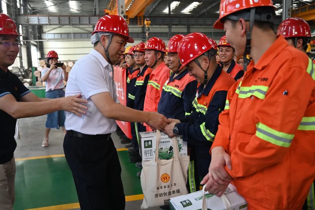近日,持续的高温给奋战在一线的员工们带来了严峻的考验,他们坚守在不锈钢生产岗位,挥洒汗水,也牵动着大家的心。7月26日,福安市总工会结合“千名干部进千企”活动部署,赴青拓集团有限公司开展了“关爱职工 夏送清凉”慰问活动。福安市总工会党组书记、常务副主席苏振铃,福安市总工会党组成员、副主席王向东带领慰问小组及慰问物资,在青拓集团党委书记、行政总经理钟盛江及福安青拓冷轧科技有限公司副总经理兰亮的陪同下,为坚守在一线的员工送上一份清凉。