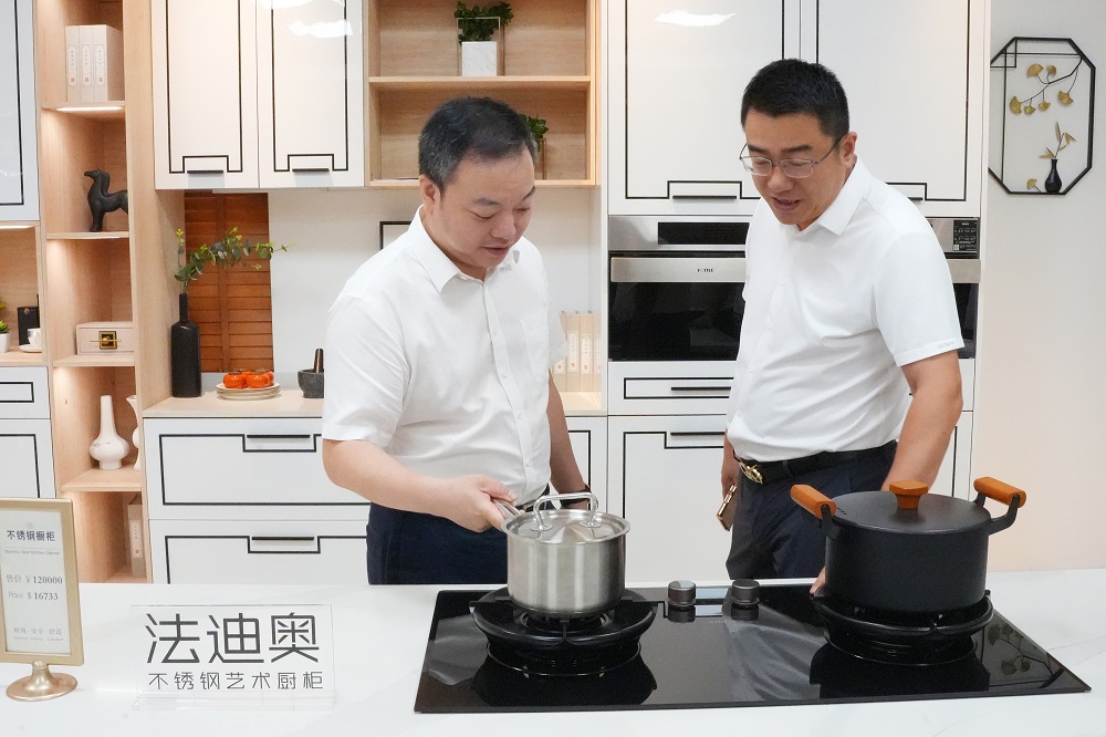 黄舒一行参观了青拓集团供销大厅、研究院、家具展厅、电子展厅等场所,并观看了企业宣传片。周玉泉详细介绍了企业发展历程、产品创新研发及生产工艺方面的情况。