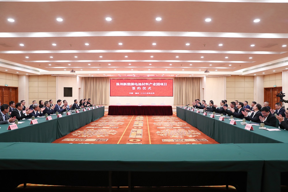 On March 9th, the Wenzhou New Energy Battery Material Industrial Park officially signed a contract. Liu Xiaotao, Zhang Zhenfeng, Ge Yiping, Chen Zuorong, and other leaders of Wenzhou City attended the signing ceremony or delivered video speeches. Xiang Guangda, Chairman of Tsingshan Industry , Xu Kaihua, Chairman of Guolianmeng Co., Ltd., Xiang Guangming, Chairman of Zhejiang Weiming Environmental Protection Co., Ltd., Qin Jiusan, Chairman of Shenzhen Xinzhoubang Technology Co., Ltd., and Hu Xiaodong, Chairman of Yongqing Technology Co., Ltd., a subsidiary of Qingshan Industrial Corporation, attended the signing ceremony.